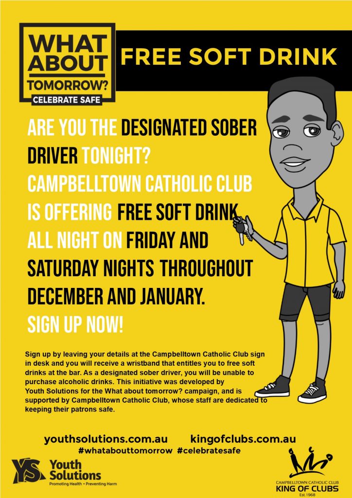 Youth Solutions and Campbelltown Catholic Club have teamed up to deliver a safer celebrations campaign for 2018 – 2019! It’s all about getting our young people and community members to put simple steps in place to make their celebrations safe and memorable for the right reasons.