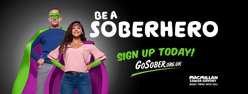 “Be a Soberhero and go 31 days without alcohol this October – say no to the booze and yes to raising money for people living with cancer.