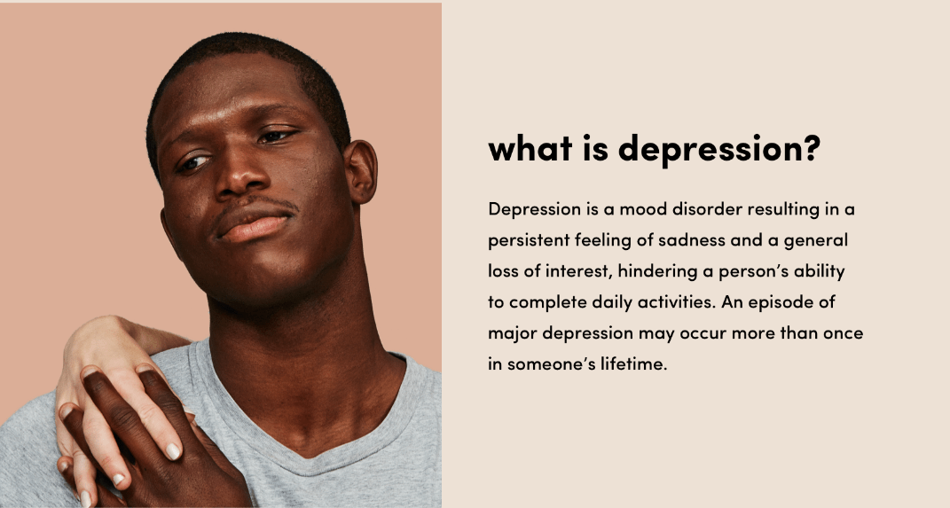 Depression is a mood disorder characterized by persistent feelings of sadness and a general loss of interest that may impact the ability to complete daily activities, as well as deeply affect one’s quality of life.