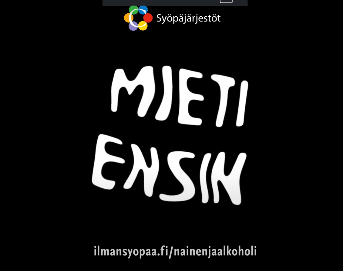 “Cancer Society of Finland investigated alcohol use among women aged 25–35 years. Alcohol has become involved in situations it did not belong to before. Wine yoga and “skumppa-spinning” are not considered to increase the risk of cancer. Cancer organizations published three videos on the subject, starring YleX presenter Jenni Poikelus.
