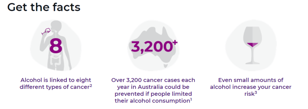 Why? Every drink increases your risk of getting an alcohol-related cancer. In fact, we know that alcohol causes more than 3,200 cancer cases in Australia each year.1 The bottom line is: there is no level of drinking that is completely safe.“