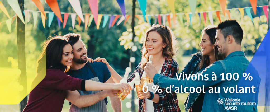 “As part of its new campaign, the Walloon Agency for Road Safety is raising awareness among all road users to enjoy it without taking any risk, by contributing to the party in complete safety with 0% alcohol drinks, and/or by anticipating the return home.