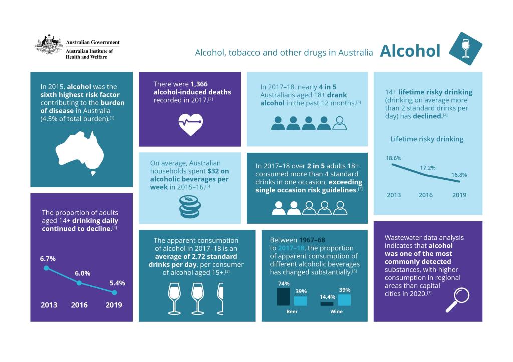 “The consumption of alcohol, tobacco and other drugs is a major cause of preventable disease, illness and death in Australia. This report consolidates the most recent information on the availability and consumption of alcohol, tobacco and other drugs in Australia, and related impacts, harms and treatment.”