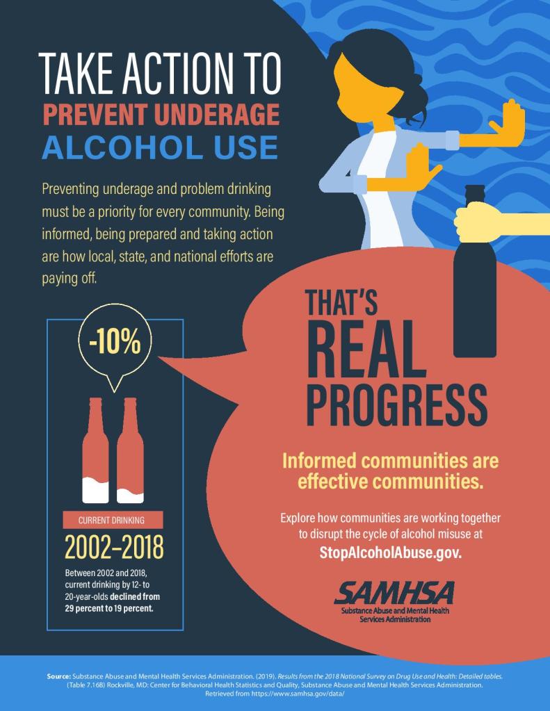 Prevention is working! Help continue the downward trend in underage drinking by planning to organize or attend an activity in your area.”