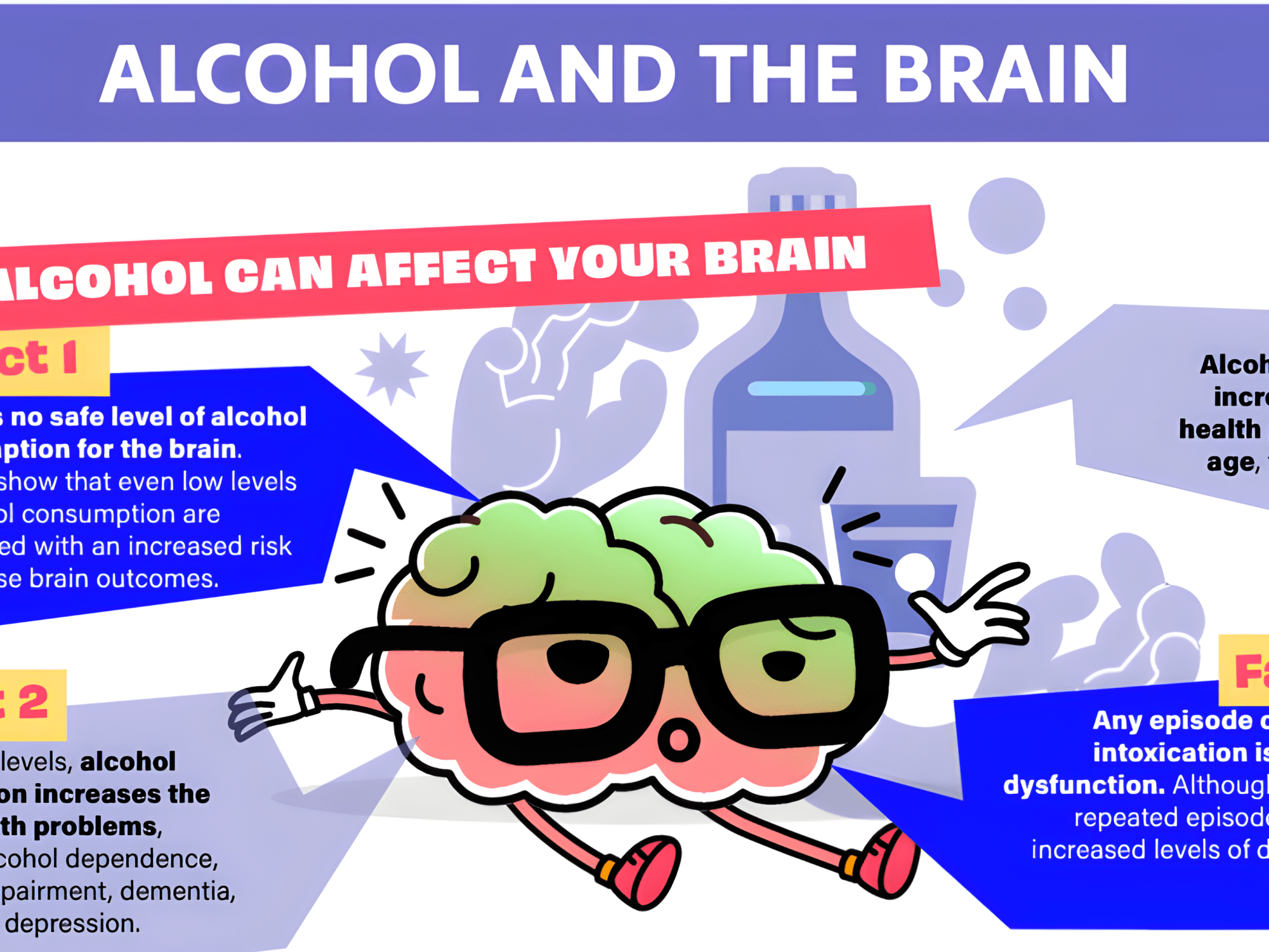 “Starting with some fast facts, this fact sheet moves on to explain the impacts of alcohol consumption on the human brain, and what people can do to protect their brain. It highlights both the immediate and long-term risks of alcohol use. These risks range from headaches and disturbed sleep through to dementia, depression, and suicide. The fact sheet lists five actions people can take to reduce these risks. It also provides a concise list of references.”