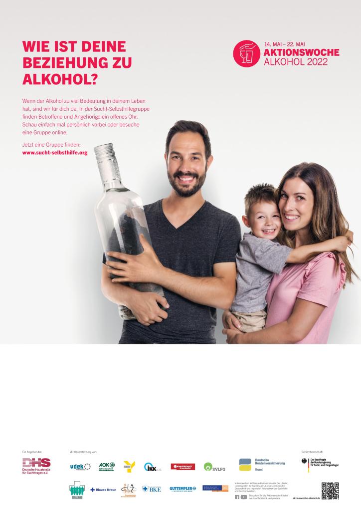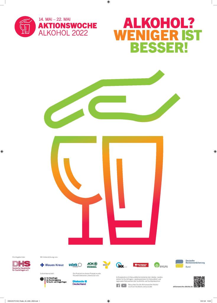 “The eighth Alcohol Awareness Week in Germany is held from 14th to 22th May 2022. It has been carried out almost every two years since 2007. The campaign wants to encourage everybody who drinks alcohol – which is about 90 percent of the German adult population – to reflect on their drinking habits and to raise awareness for the risks associated with alcohol consumption. Referring to the WHO, the central message is: “Alcohol? Less is better!”. Institutions, professionals and dedicated individuals organize events on a local level. Thousands of professional employees of the addiction aid, volunteers of the self-help or occupational health experts give new ideas for discussions and information in order to raise awareness in several different settings, like pedestrian zones, hospitals, workplaces, doctor´s offices, pharmacies and churches – only to name a few. It is the aim to raise awareness in personal contact with the population.