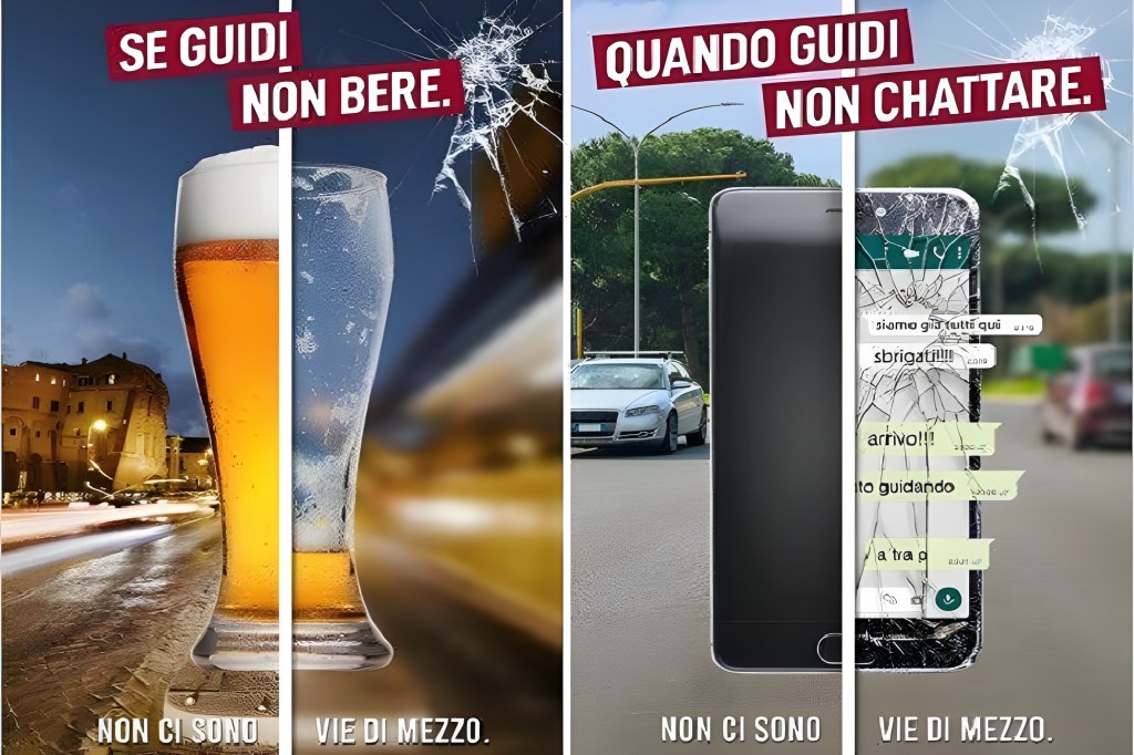 “The campaign will focus on three messages,” Patanè adds, “avoiding the use of alcohol before driving; avoiding distractions by using smartphones and respecting speed limits. The three posters on which the campaign is centered will be put up throughout the city and on Atac bus timetables, on large LED fixtures, on buildings under restoration, and on poles and shelters at bus stops.”