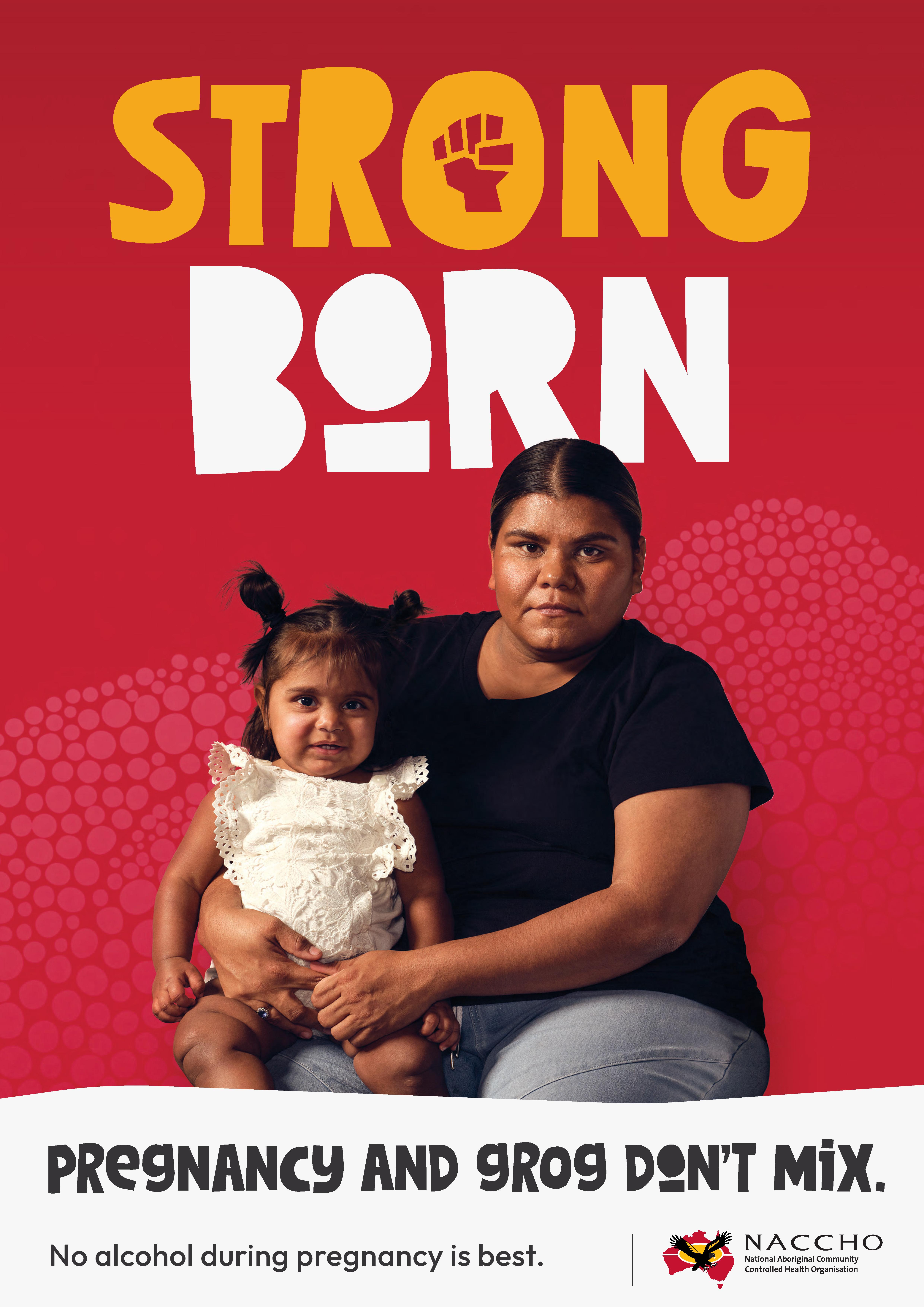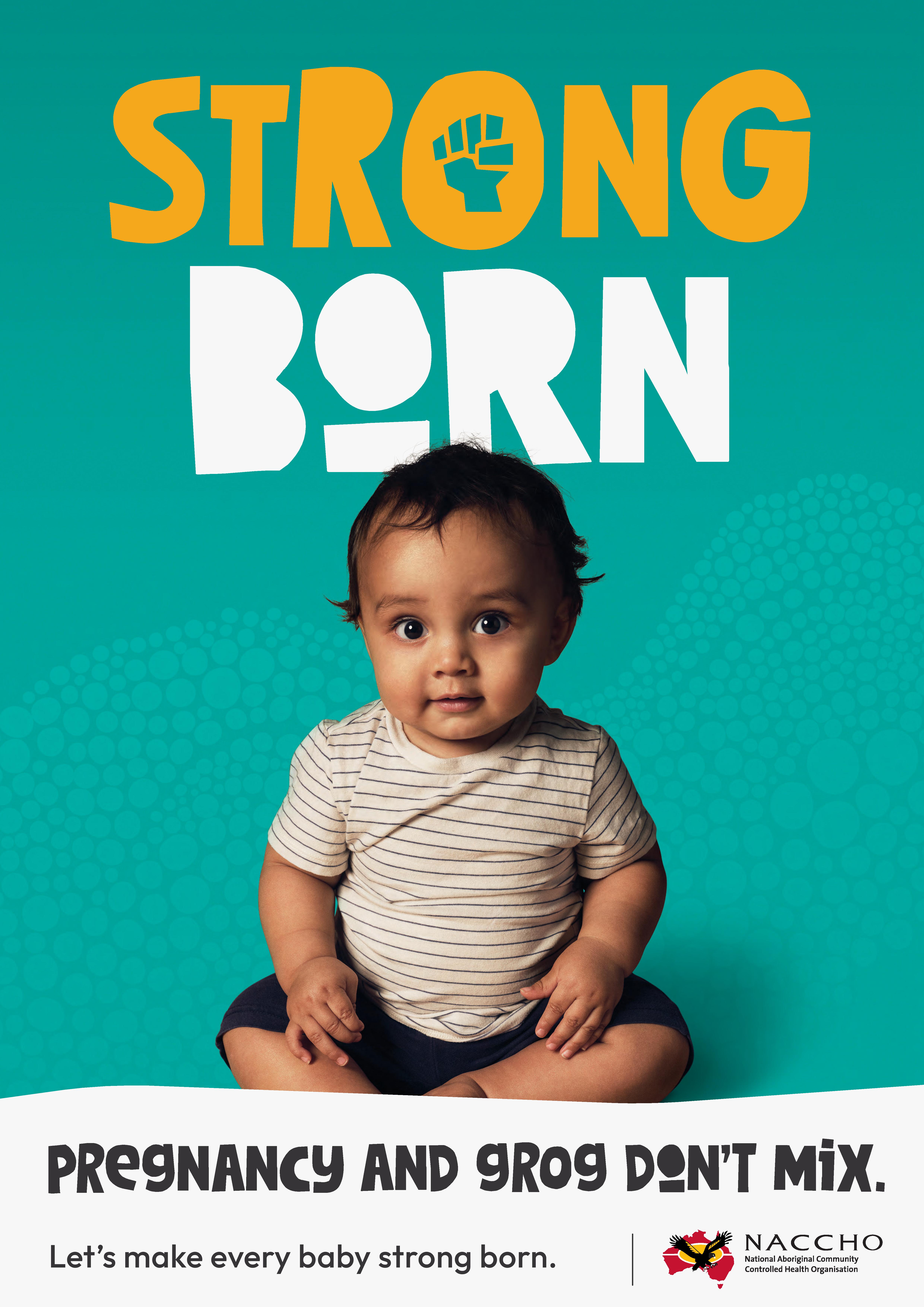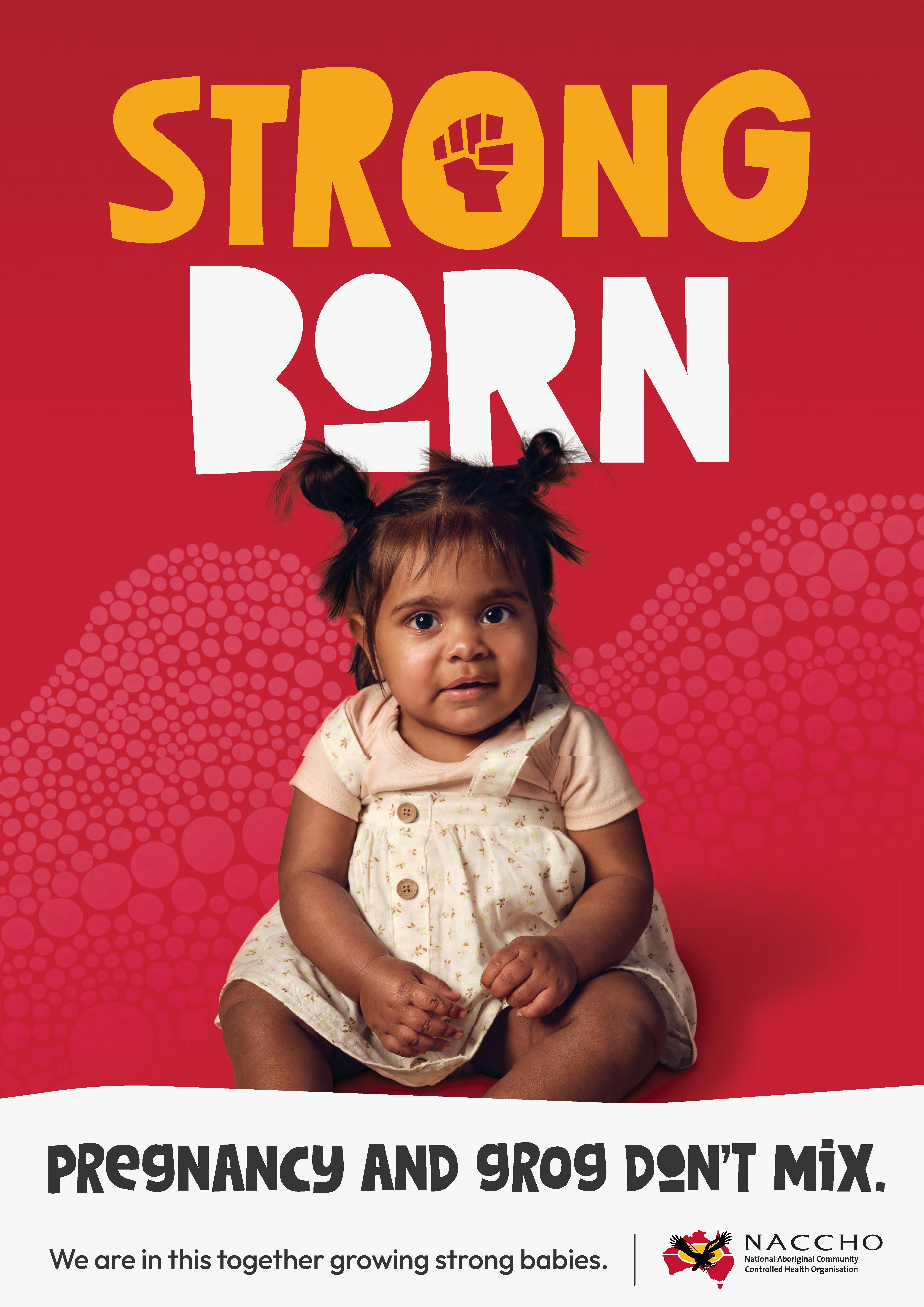 “Strong Born is a communications campaign designed to raise awareness of Fetal Alcohol Spectrum Disorder (FASD) and the harms of drinking alcohol while pregnant and breastfeeding, among Aboriginal and Torres Strait Islander peoples in rural and remote communities (MM4-MM7). Strong Born is also about supporting people with FASD and their families and carers, by understanding what FASD is, and the services that may be available for individuals and families.”