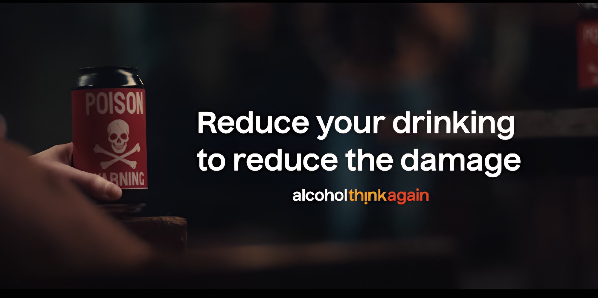 It explains that every drink converts to more poison, increasing the damage, and increasing the risk of cancer. The campaign calls for Western Australian adults to reduce their drinking to reduce the damage.