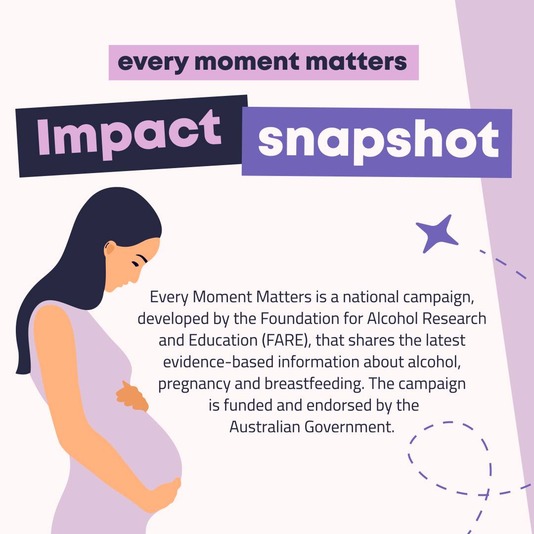 The campaign encourages the message that “every moment matters” in protecting a baby’s development, and aims to educate women and the community on the importance of abstaining from alcohol during these critical periods.