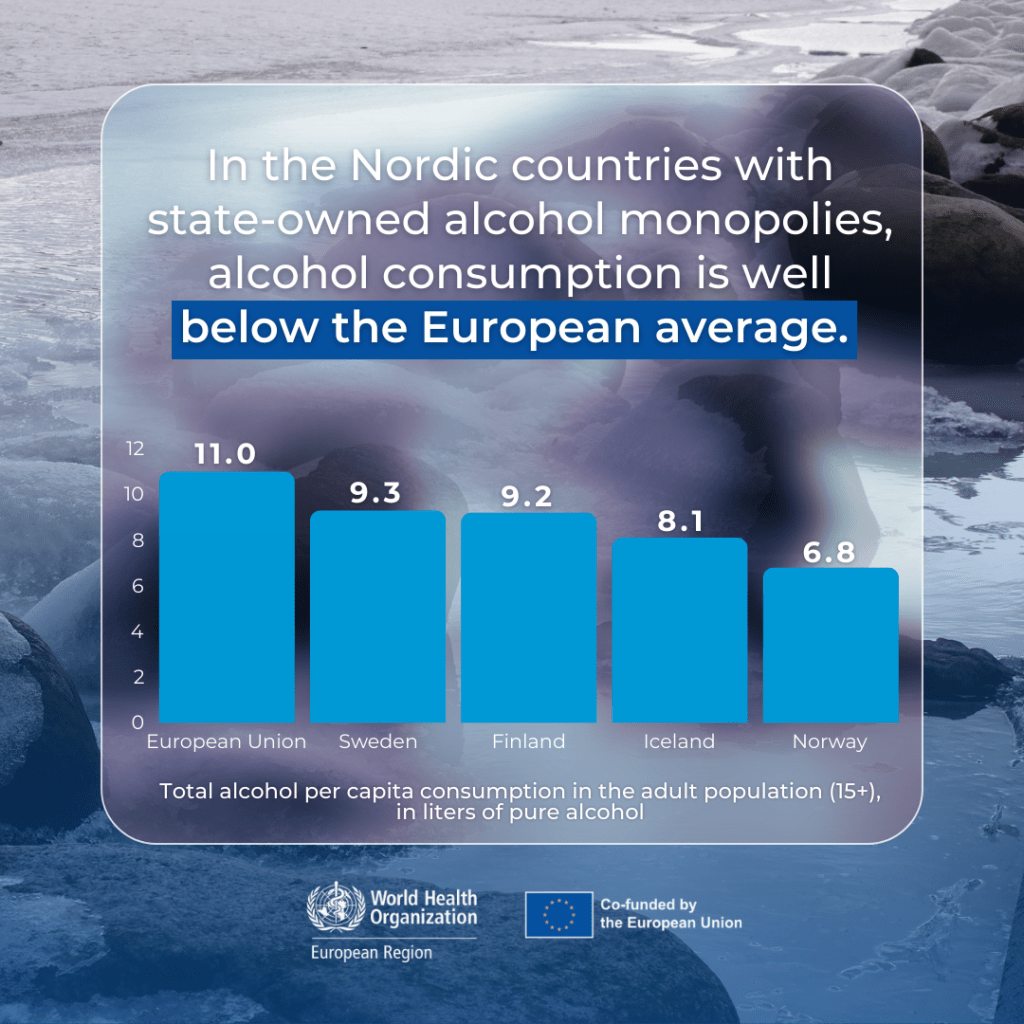 The report emphasizes that these monopolies help reduce alcohol-related health issues by implementing strict sales regulations, including controlled outlet numbers, limited operating hours, enforced age restrictions, and a ban on alcohol marketing and discount pricing. WHO/Europe highlights that Nordic countries with state-owned alcohol retail have lower per capita consumption and fewer alcohol-attributable harms compared to the EU average. The public health-first approach stands in contrast to privatized alcohol sales, which tend to increase consumption.