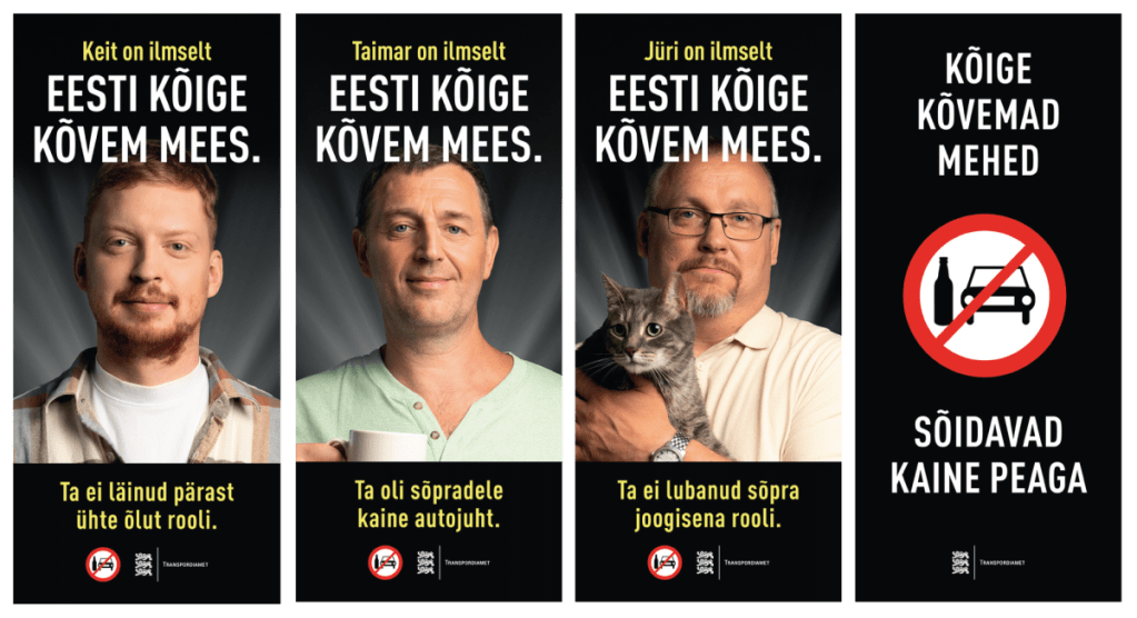 But this campaign goes beyond statistics. It tackles the unwritten social norms that still dominate many gatherings – the idea that a “real man” keeps up with others, never refuses a toast, and doesn’t say no. The Transport Administration challenges this thinking and offers a new version of what it means to be tough. The “toughest men” in Estonia – Jüri, Keit, and Taimar – are the ones who don’t drink and drive, who look out for their friends, and who speak up when someone goes too far. True strength is in taking responsibility, not in drinking more than others.