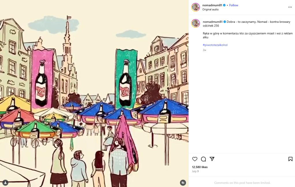 In Poland, influencer and activist Olga Legosz (known online as nomadmum81) has launched a new stage of her social campaign #PiwoToTeżAlkohol (Beer is also alcohol), aiming to eliminate alcohol advertising from public spaces. The campaign challenges the normalization of beer, especially non-alcoholic beer, as harmless, and criticizes how such messaging blurs the lines between soft drinks and alcoholic beverages. According to research from the Conscious Human Institute, 8 out of 10 minors in Poland have already had their first experience with alcohol, and 78% of them choose beer. Most started drinking at ages 10–12, often with encouragement or approval from their parents.
