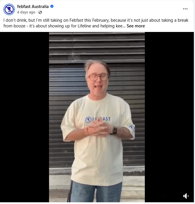 The fundraising piece matters because Lifeline’s service takes real infrastructure: trained supporters, phone and text lines, online chat, and a national network of centres, volunteers, and staff. The campaign text describes demand at huge scale, with more than a million contacts a year (it also cites a “every 24 seconds” figure), and estimates it costs $39 to help connect someone in crisis with support. Febfast is framed as “one small challenge, one big impact”, where a personal month off alcohol is paired with keeping those services available when someone reaches out.