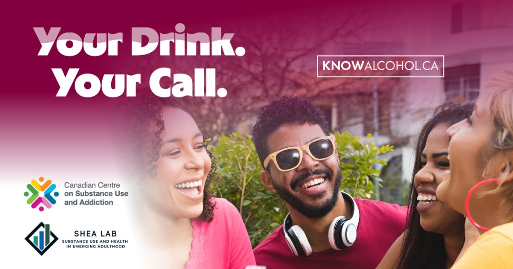 The campaign Your Drink. Your Call. puts alcohol awareness for students into a tone that tries to speak with them, not at them. Developed by the SHEA Lab at St. Francis Xavier University together with the Canadian Centre on Substance Use and Addiction, it was designed for post-secondary settings to raise awareness of Canada’s Guidance on Alcohol and Health, explain alcohol-related harms and costs, and help students make more informed decisions about drinking.